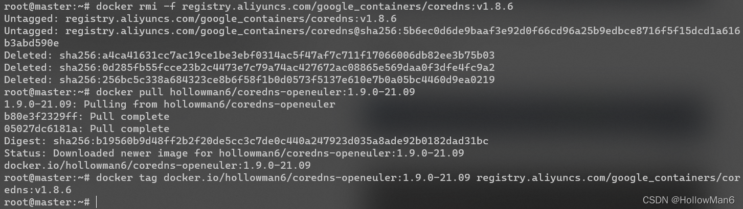 docker tag docker.io/hollowman6/coredns-openeuler:1.9.0-21.09 registry.aliyuncs.com/google_containers/coredns:v1.8.6