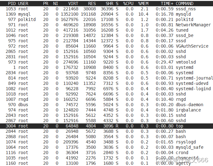 // 这个就是top命令输出的内容,有人会感觉很乱,其实top命令可以根据参数来查看你想查看的内容