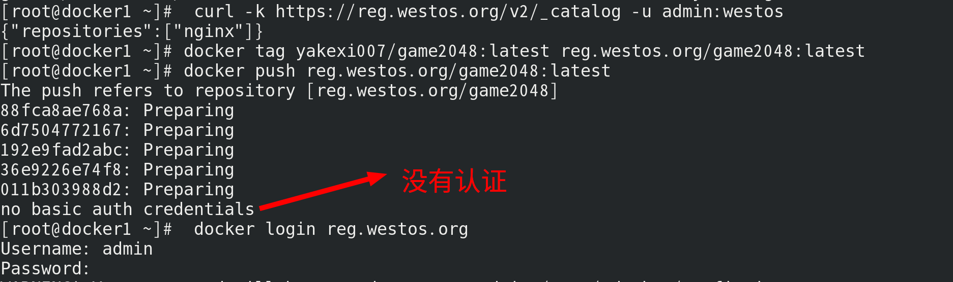 准备好了认证文件,还是需要删掉已有的registry 然后再写进认证功能    这样就完成了加密 搭建好了一个基本的私人仓库