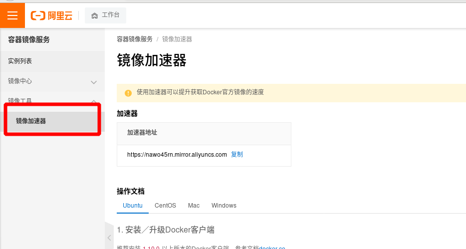 这样就上传成功了 说完了上传,还有下载,就是pull 直接docker pull 有时候网速会非常慢 这里以aliyun为例 提供一种加速方式 首先进入阿里云官网 注册一个账号 然后