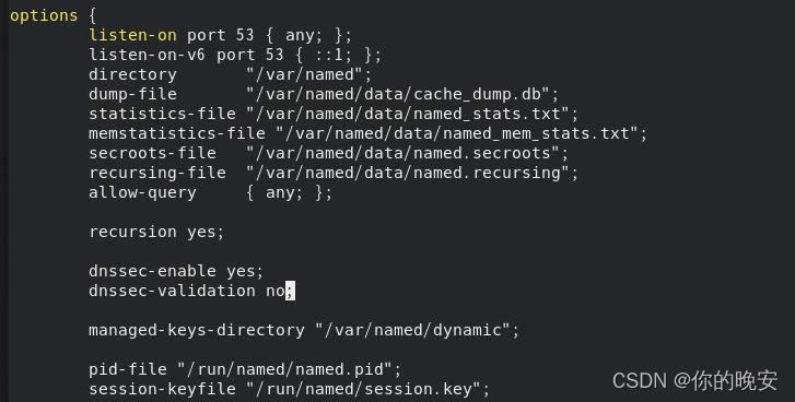 ?? ?dnssec-enable yes; ?? ?dnssec-validation yes;? ? ? ? ? ? ? ? ? //改为no可以忽略SElinux影响