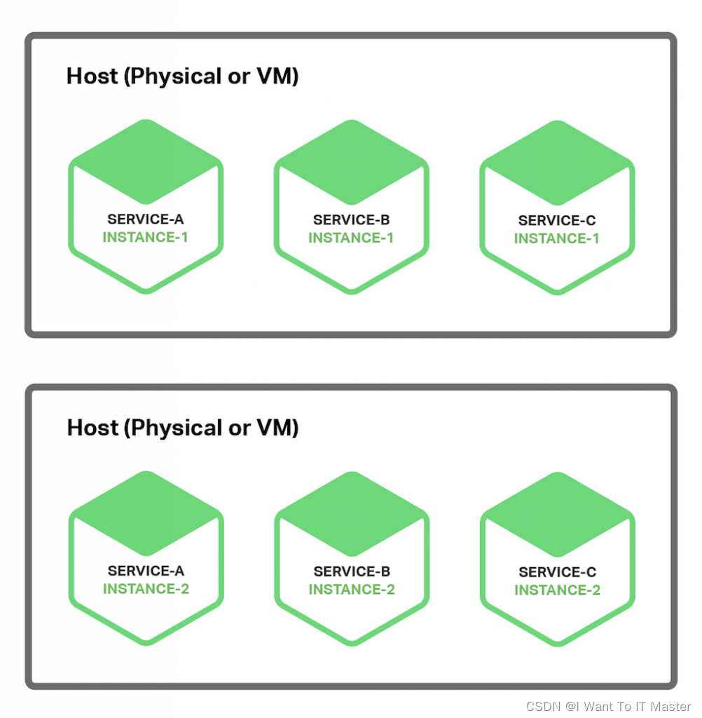 在这种部署模式下,每个服务实例都运行在其各自的容器中,因此也被称为操作系统级别的虚拟化机制。