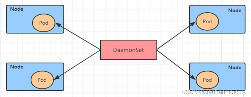 - DaemonSet:在集群中指定Node上运行且仅运行一个副本,一般用于守护进程类的任务