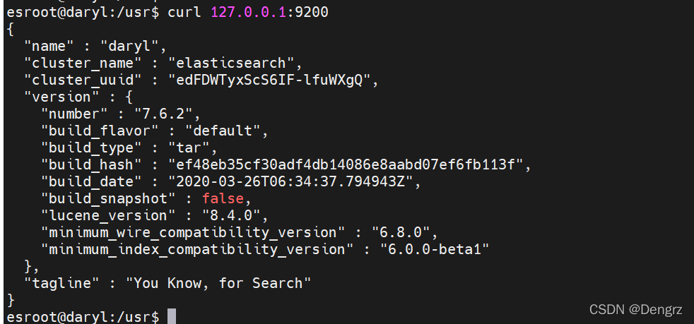 esroot@daryl:/usr/elasticsearch-7.6.2$ curl 192.168.29.131:9200