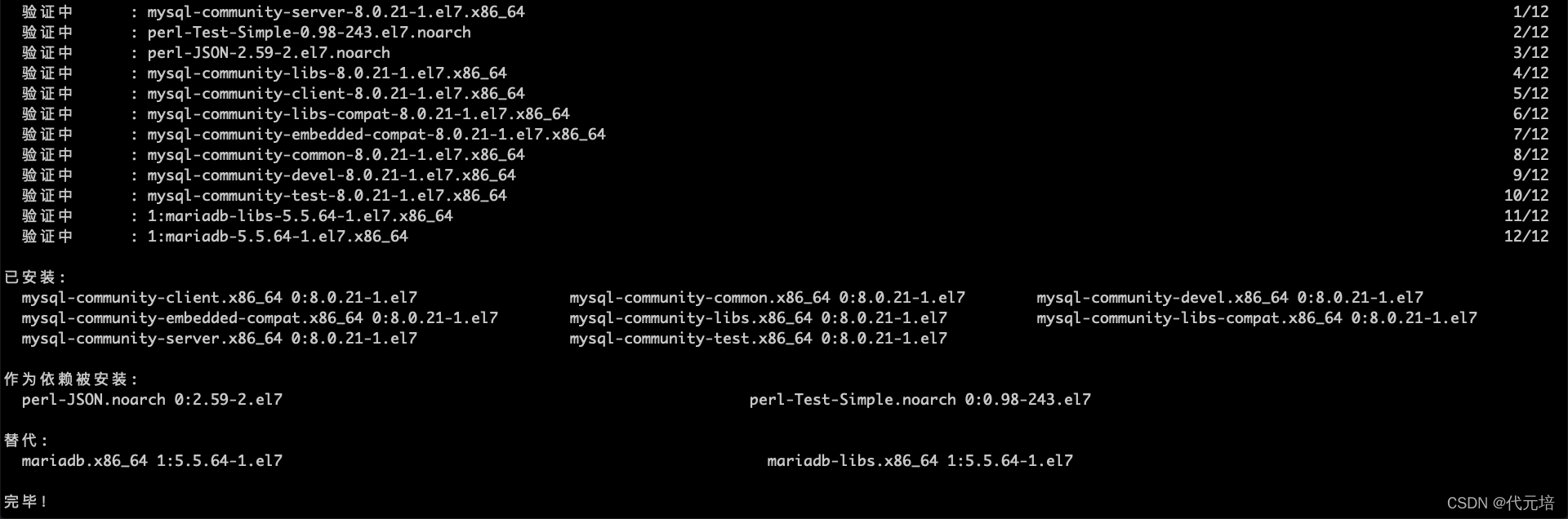 3、解压至当前文件夹,解压命令:?tar -xvf mysql-8.0.21-1.el7.x86_64.rpm-bundle.tar?
