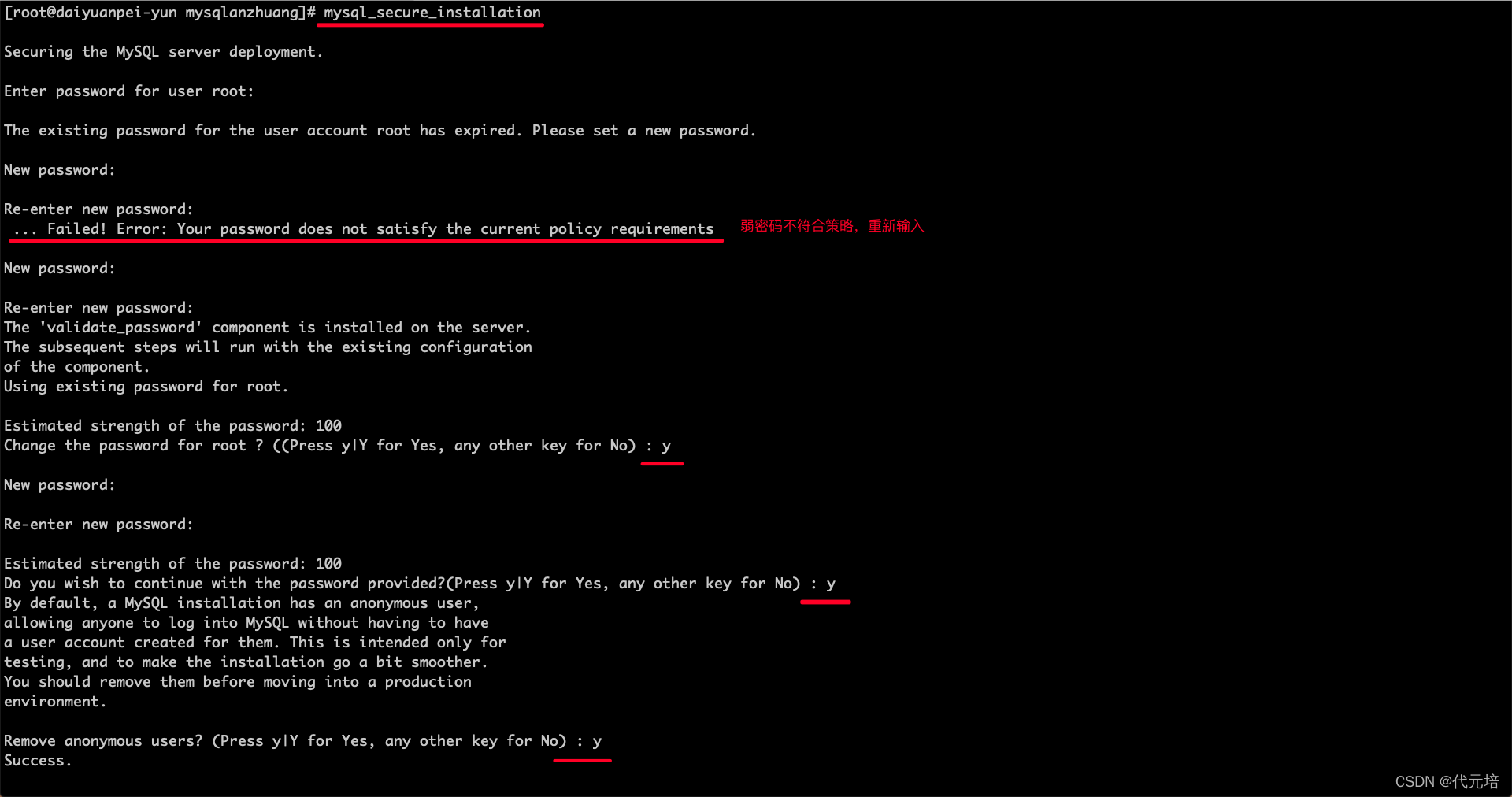 (3.2)修改MySQL密码??mysql_secure_installation? // 需要校验密码强度,弱密码将会提示,并重新输入