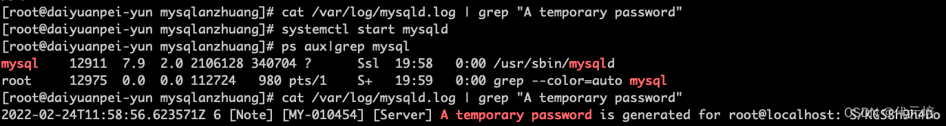 (3.1)默认账号和密码:?cat /var/log/mysqld.log | grep "A temporary password"?