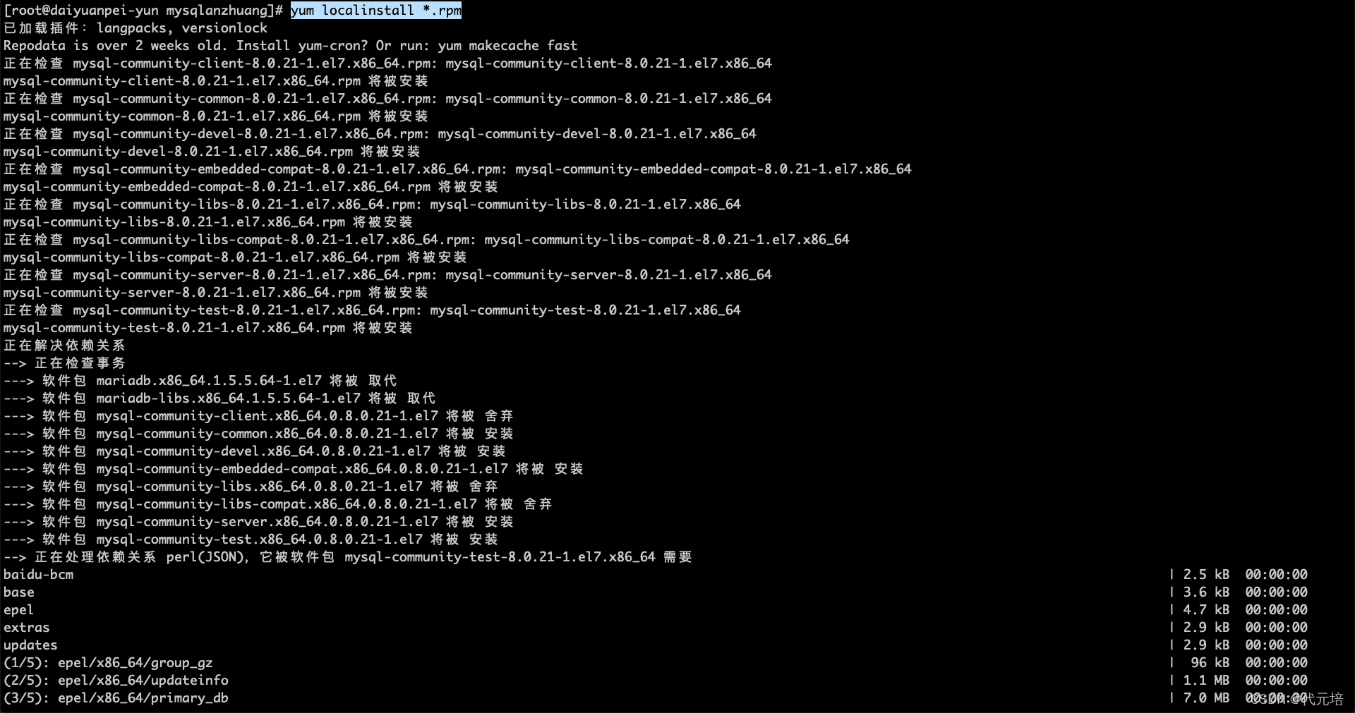 4、执行安装命令,?yum localinstall *.rpm?,过程中会自动处理依赖关系。