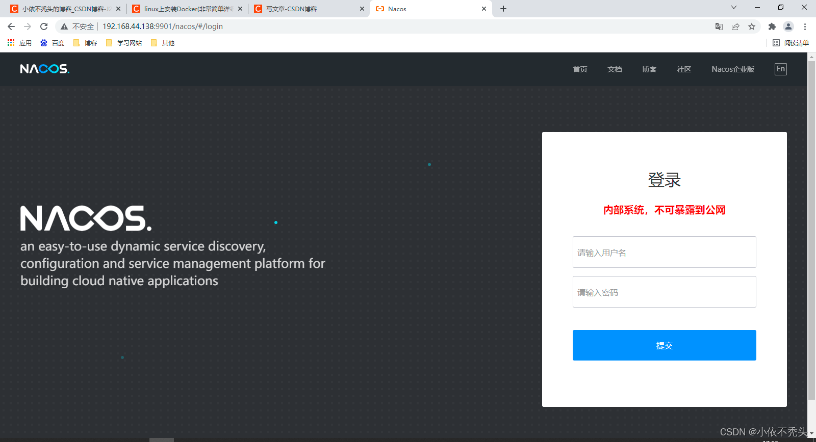 - p 9901 : 8848 \ -----9901给外部访问的,nacos开启的端口8848,9901挂载8848