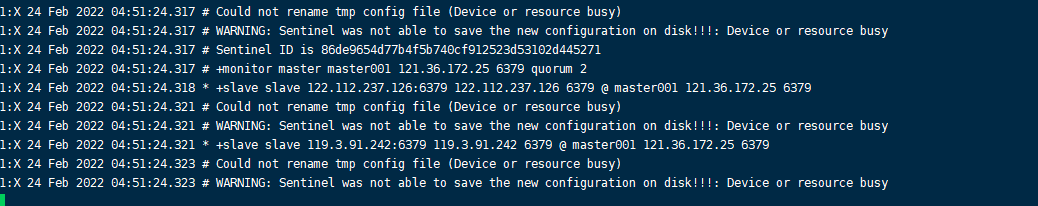 启动成功后每台机器的sentinel.log下
