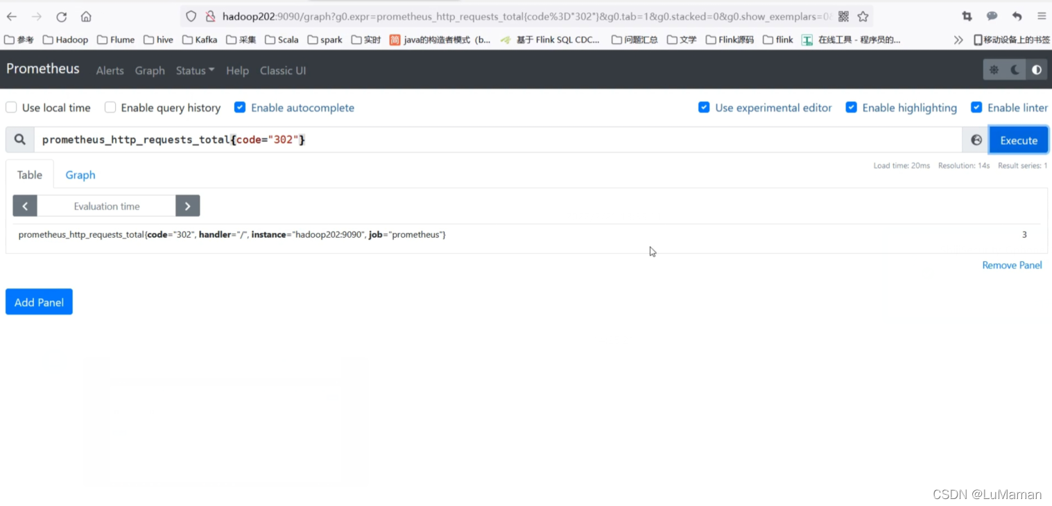 1、查询总请求数: prometheus_http_requests_total{code=”302”}[5s] prometheus_http_requests_total{} offset 5m prometheus_http_requests_total{} offset 1d