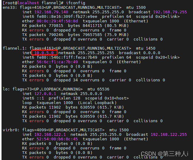观察docker0的网卡ip地址已经处于flannel网卡网段中