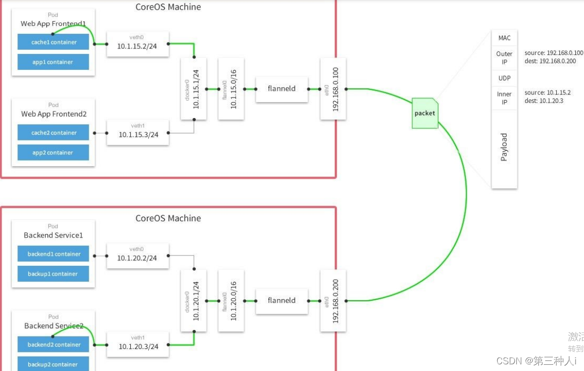 7.VXLAN或UDP数据包到达目的宿主机解封装,解出原始数据包,最终到达目的容器。