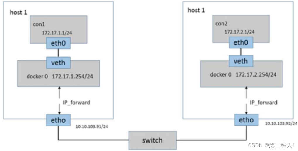 Docker默认的网络环境下,单台主机上的Docker容器可以通过docker0网桥直接通信,而不同主机上的Docker容器之间只能通过在主机上做端口映射进行通信。