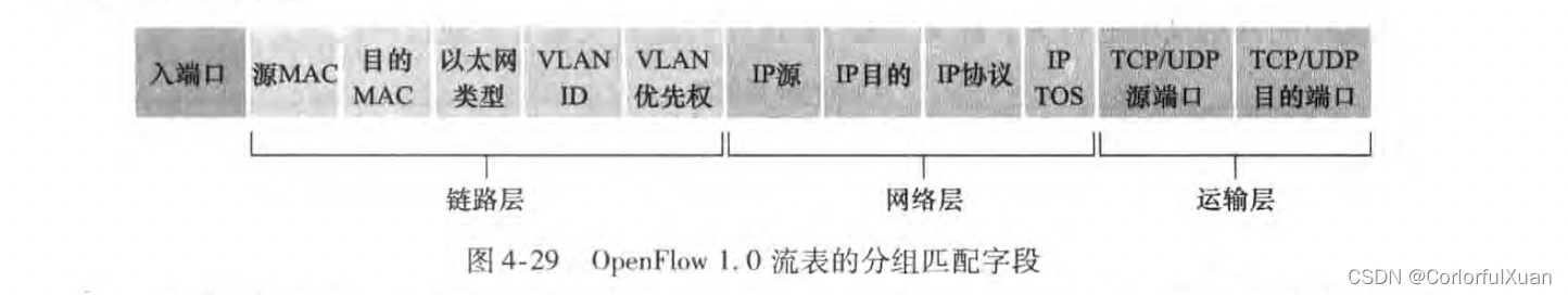 - 匹配加动作转发表在OpenFlow中称为流表。