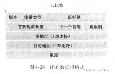 - 流量类型:8比特字段类似于IPv4中的服务类型字段。