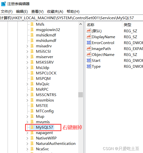 HKEY_LOCAL_MACHINE\SYSTEM\ControlSet001\services\MySQL