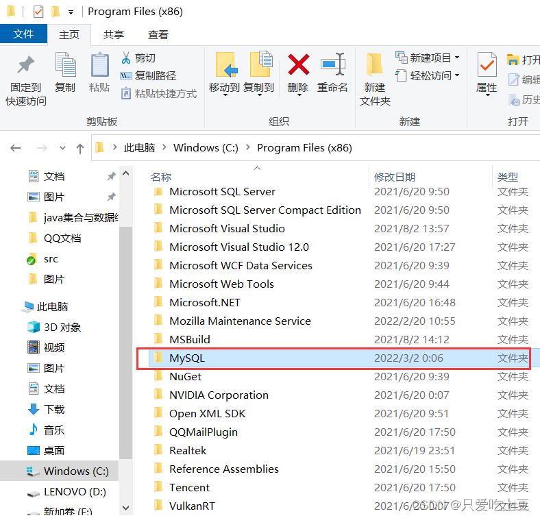 3.在我们之前安装 MySQL 的地方检查有没有残留的文件 , 并将其手动删除.(我是默认c盘的)
