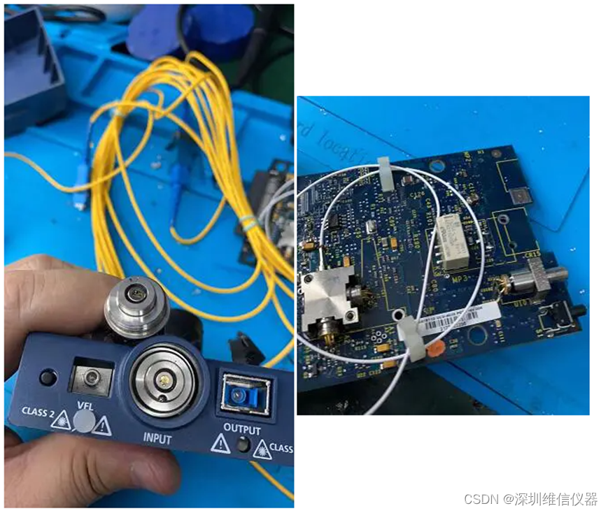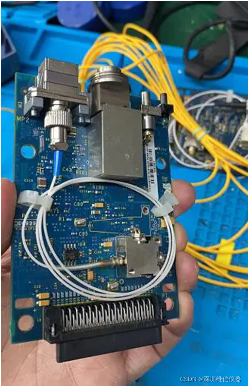 经过仔细检查和甄别,确认该器件基本没有维修的可能,唯一能做的就是更换掉故障元器件。非常幸运的是,我们刚好仓库里有一台备用的样机模块闲置不用,只能先顶上了,征用这个模块的功率计器件,原路焊接回去。
