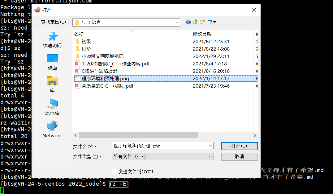 rz -E 接收:云服务器可接收本地机器上的指定文件