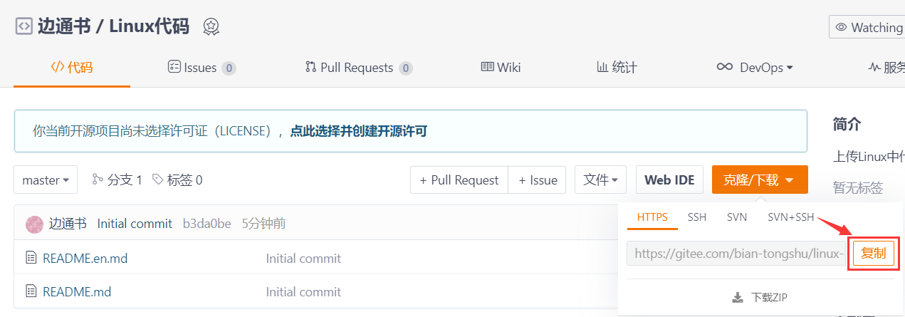 git clone [url] 这里的 url 就是刚刚建立好的仓库的链接.