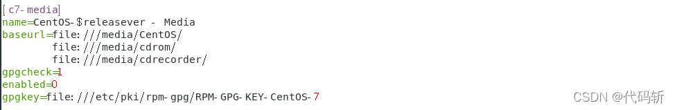 YUM源网络YUM源,配置文件/etc/yum.repos.d/CentOS-Base.repo;本地YUM源,配置文件/etc/yum.repos.d/CentOS-Media.repo;