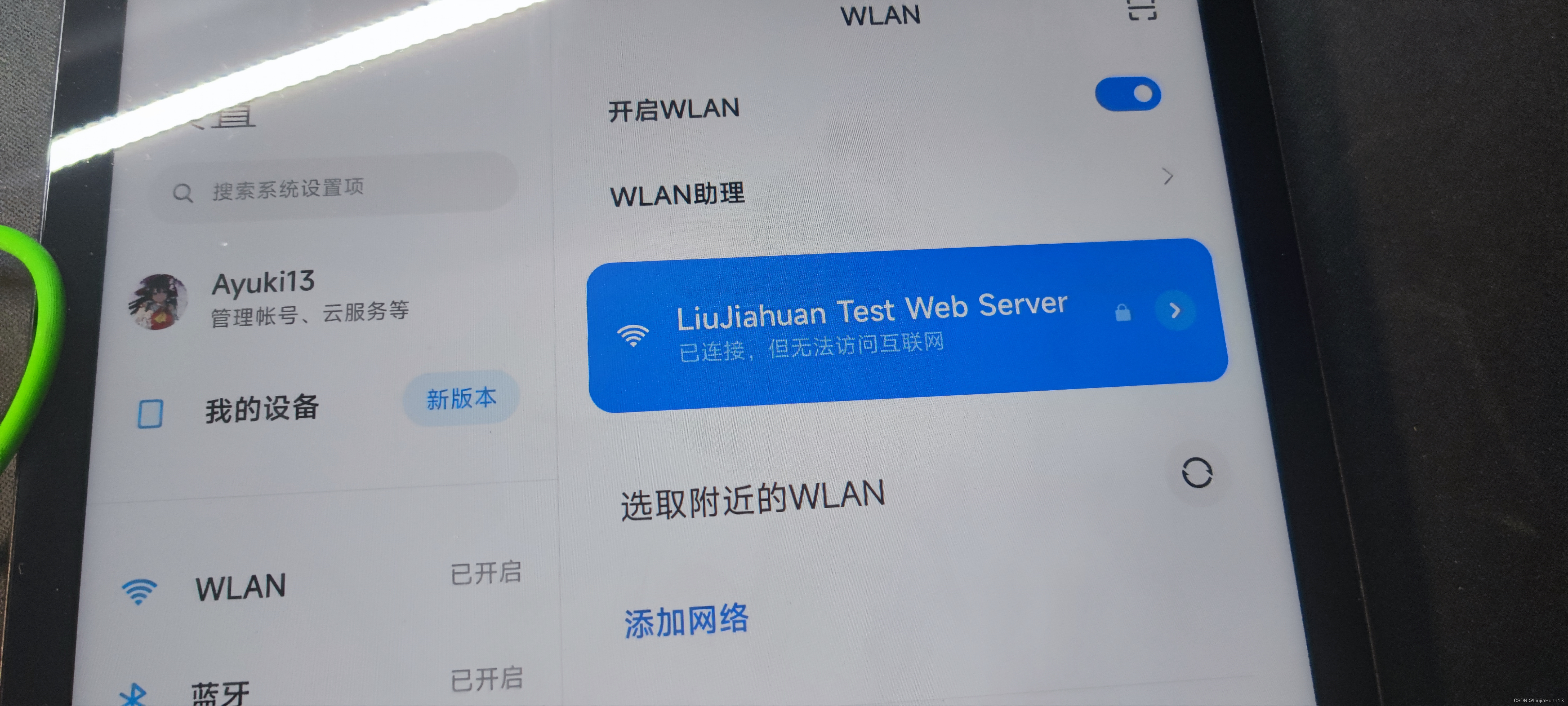const char *ssid = "LiuJiahuan Test Web Server"; // 这里定义将要建立的WiFi名称。此处以""为示例