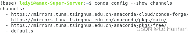 弄完之后使用命令conda config --show channels显示一下是否配置镜像成功: