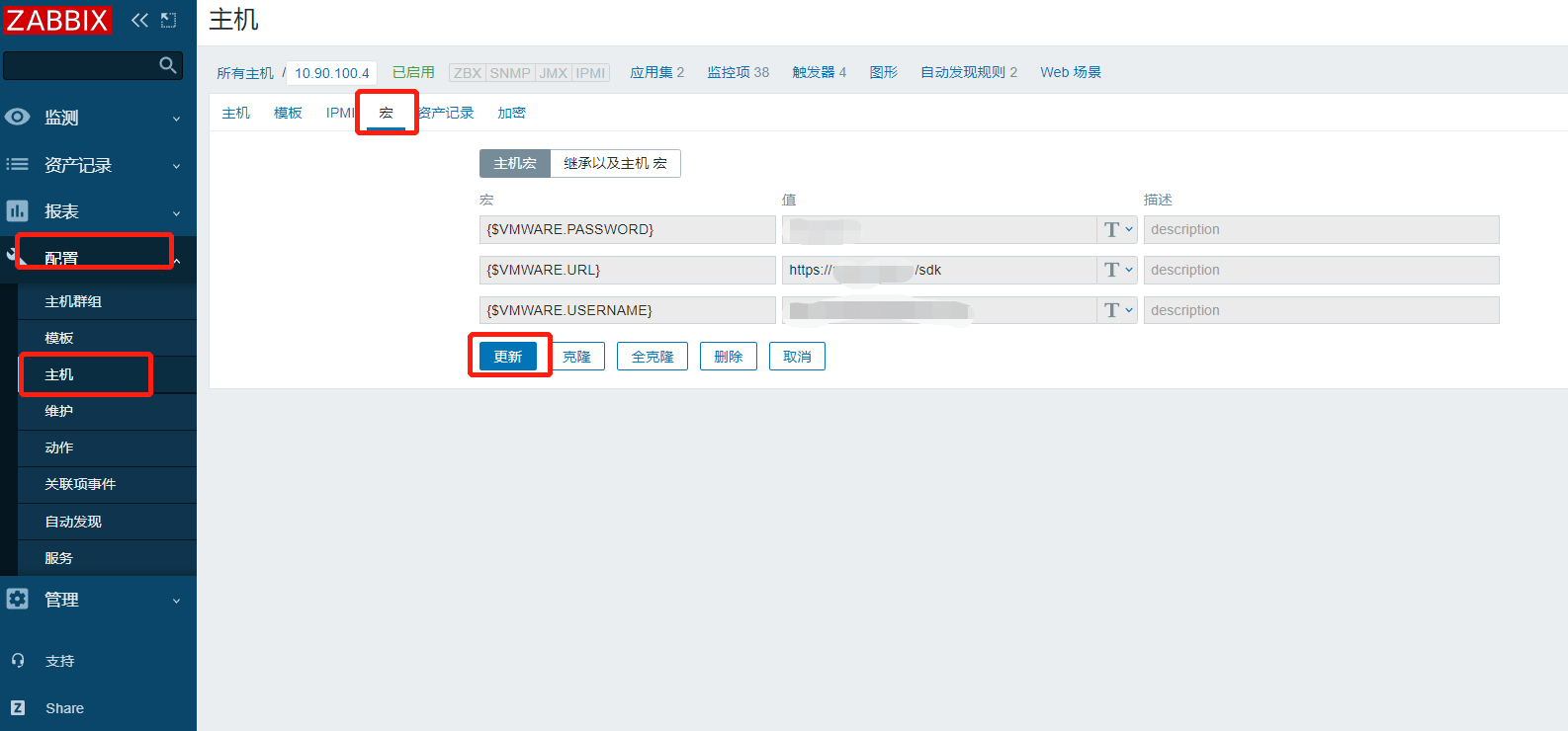 zabbix提供了监控vcenter集群的模板,Template VM VMware(用于监控vcenter集群的状态),Template VM VMware Guest(用于监控esxi下的虚拟机状态),Template VM VMware Hypervisor(用于监控esxi主机状态) 我们只要在vcenter主机上链接Template VM VMware模板就可以实现对整个vcenter集群的监控,Template VM VMware模板会自动关联其他两个模板,实现自动发现集群内的esxi主机和虚拟机