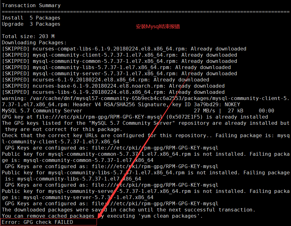 !!!如果报如下错误,则第4步后面接上–nogpgcheck 参数重新安装 !!