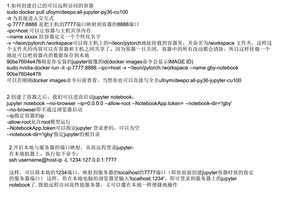我的***项目中, 一般会新建一个shell文件启动docker 比如test.sh nvidia-docker run -it --net=host --name=myshell --rm \ -v /mnt/data1:/mnt/data1 \ -v /mnt/data3:/mnt/data3 \ -v /mnt/data4:/mnt/data4 \ -v /mnt/data6:/mnt/data6 \ -v /mnt/data7:/mnt/data7 \ -v /mnt/data8:/mnt/data8 \ -w /workspace/***/ \ ***name:******版本?\ /bin/bash