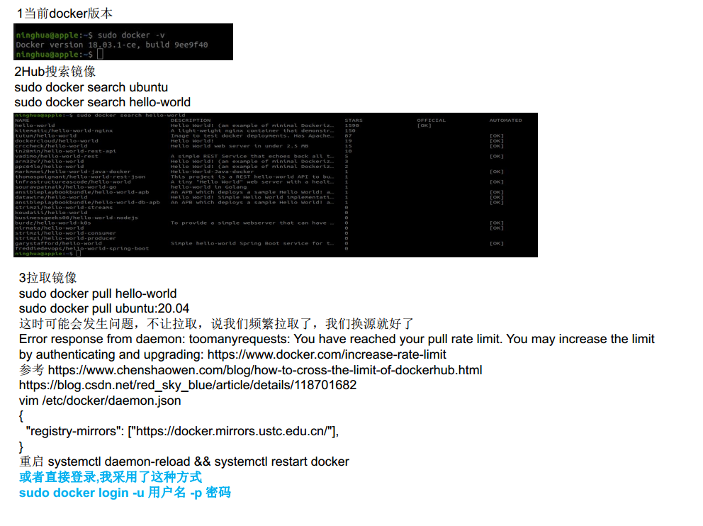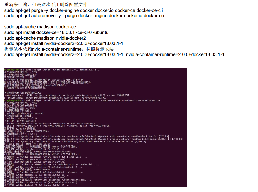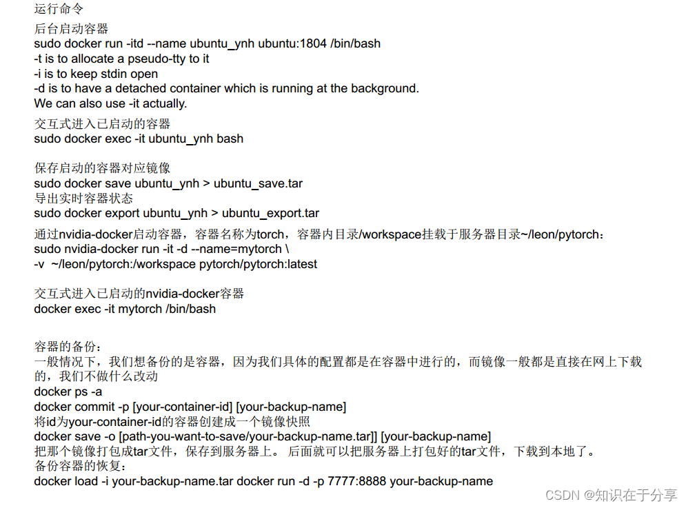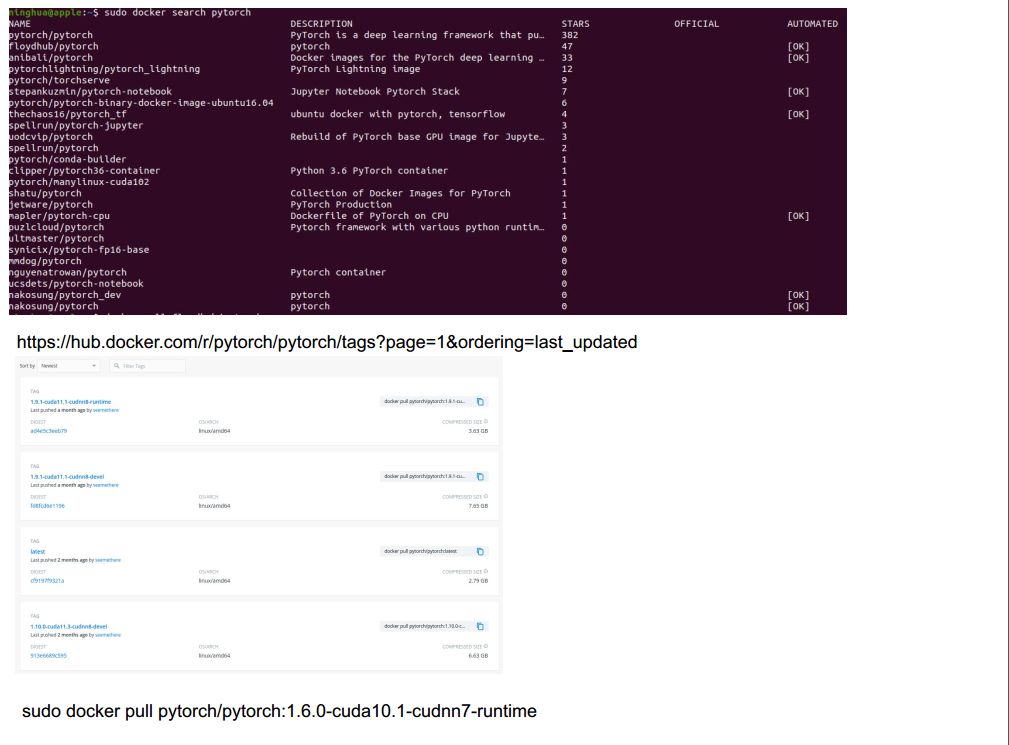 官方 https://github.com/nvidia/nvidia-docker/wiki/Installation-(version-2.0) https://docs.nvidia.com/datacenter/cloud-native/container-toolkit/install-guide.html#docker https://docs.docker.com/engine/install/ubuntu/ 怎么将之前的docker删除干净 https://askubuntu.com/questions/935569/how-to-completely-uninstall-docker 其他issue In Ubuntu 20.04 can't use nvidia docker https://askubuntu.com/questions/1249022/in-ubuntu-20-04-cant-use-nvidia-docker Install nvidia-docker on Ubuntu 20.10. https://github.com/NVIDIA/nvidia-docker/issues/1407 国内博客 Linux Ubuntu 20.04 docker 安装 GPU 工具箱 https://zhuanlan.zhihu.com/p/418920071 ubuntu+docker使用nvidia显卡运行pytorch https://zhuanlan.zhihu.com/p/76464450 Docker, 救你于「深度学习环境配置」 的苦海 https://zhuanlan.zhihu.com/p/64493662 如何在 Ubuntu 20.04 上安装和使用 Docker https://zhuanlan.zhihu.com/p/143156163 国外系列博客 建议把这几个博客看完再看我这个接下来的东西, 博客很短 https://sh-tsang.medium.com/installation-of-docker-3b18d9e70bea https://sh-tsang.medium.com/docker-tutorial-2-pulling-image-b58326448717 https://sh-tsang.medium.com/docker-tutorial-3-running-images-1dbb76b971af https://sh-tsang.medium.com/docker-tutorial-4-exporting-container-and-saving-image-c3a7d792cfb6 https://sh-tsang.medium.com/docker-tutorial-5-nvidia-docker-2-0-installation-in-ubuntu-18-04-cb80f17cac65