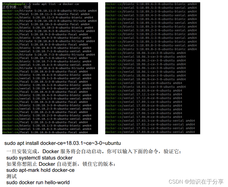 4 列出现在可安装的所有docker版本 sudo apt list -a docker-ce sudo apt list -a docker-ce-cli apt-cache madison docker-ce