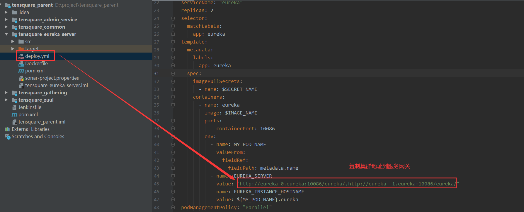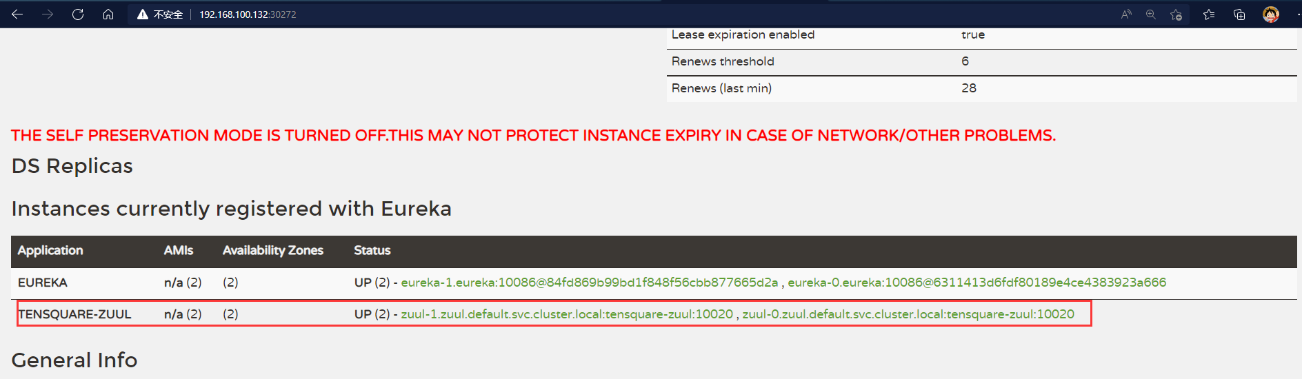 value: "http://eureka-0.eureka:10086/eureka/,http://eureka- 1.eureka:10086/eureka/"