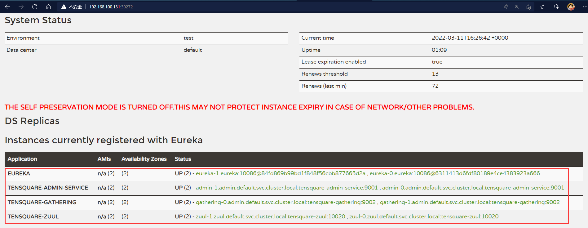 eureka NodePort 10.1.147.207 <none> 10086:30272/TCP 8m30s