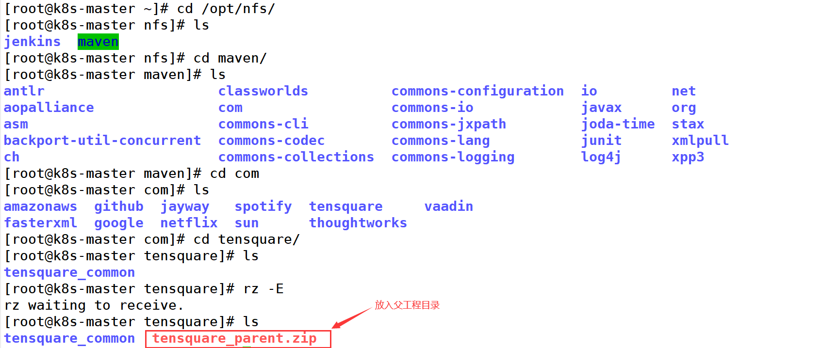 需要手动上传父工程依赖到NFS的Maven共享仓库目录中