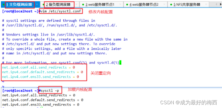 补充:修改好主负载服务器上的配置文件后,感觉要改的好多,其实主备之间配置就三点不一样,这时候就可以远程复制一波啦。(在主负载服务器上操作)
