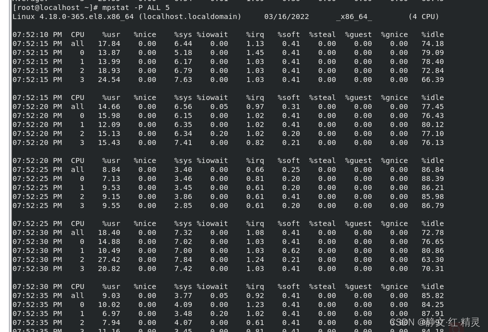 mpstat -P ALL 5