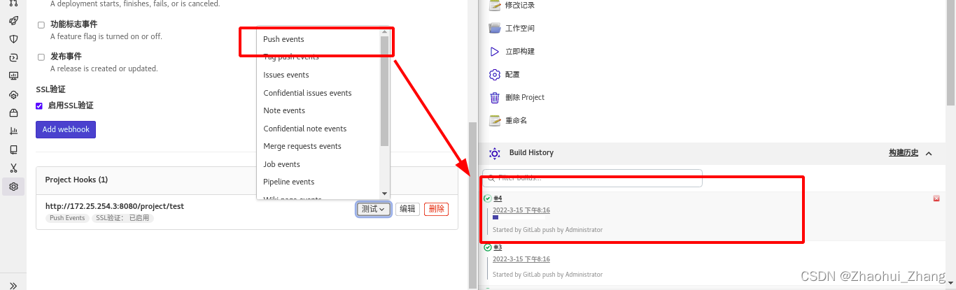 第二步:查看jenkins中test项目的构建历史,显示在gitlab发生更改时已经触发构建?