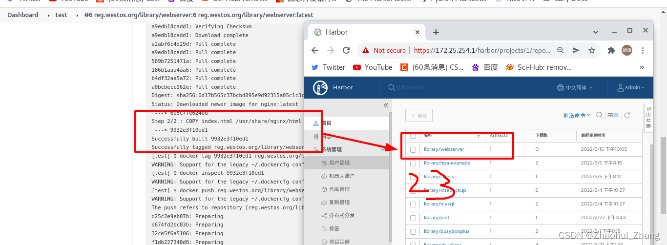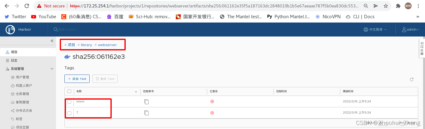在harbor仓库中也可以看到构建成功的镜像