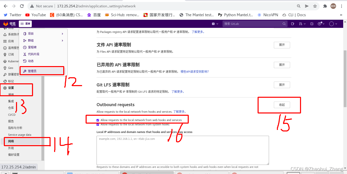 在gitlab上添加要通知的地址及token?