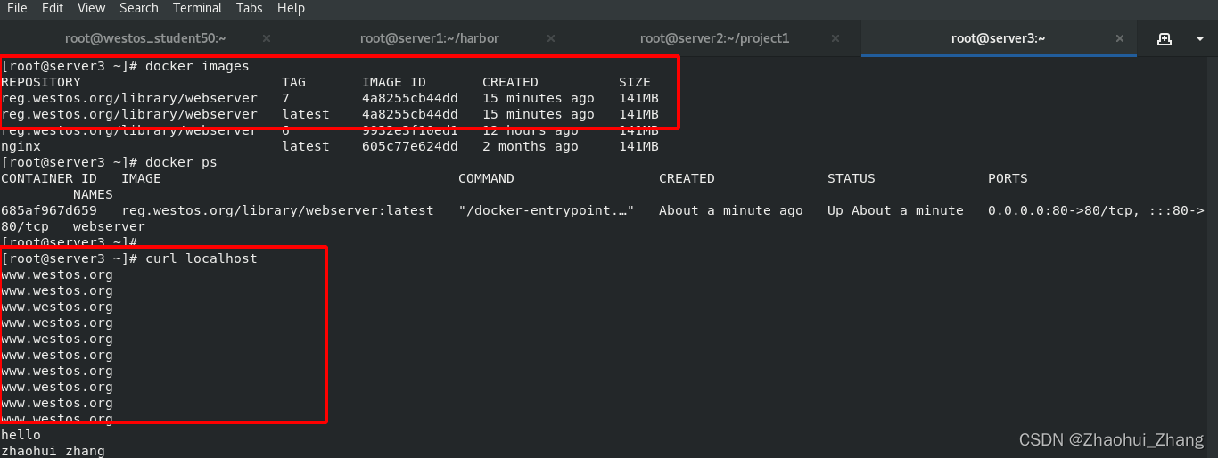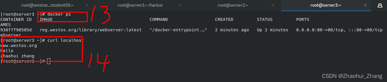 在浏览器访问server4的IP,在server终端查看docker运行情况。都自动构建好了。