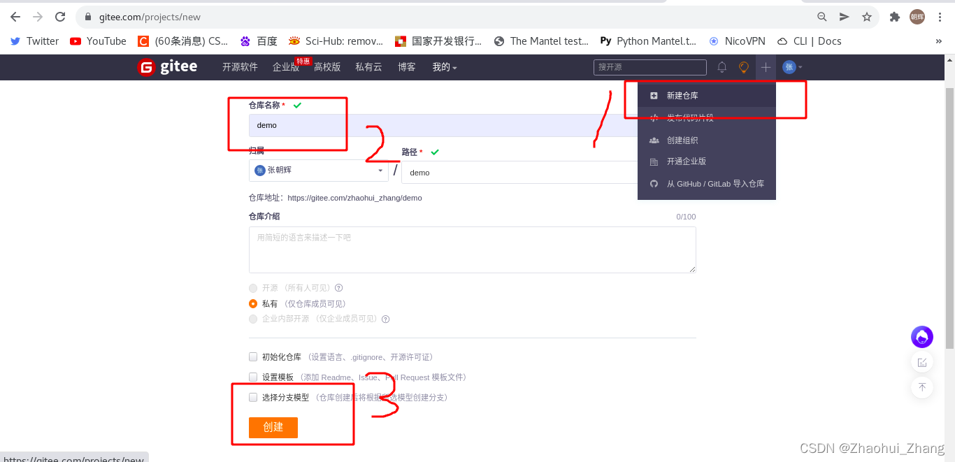 远程仓库:注册github/gitee帐号,并新建一个仓库:?
