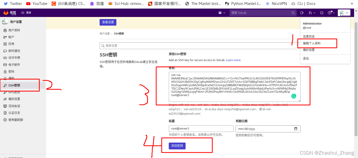 ?在gitlab上添加jenkins客户端的公钥: