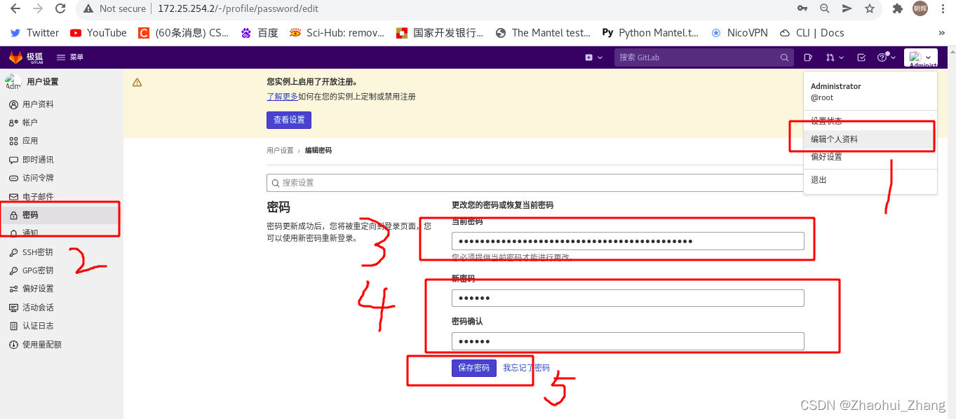修改密码: