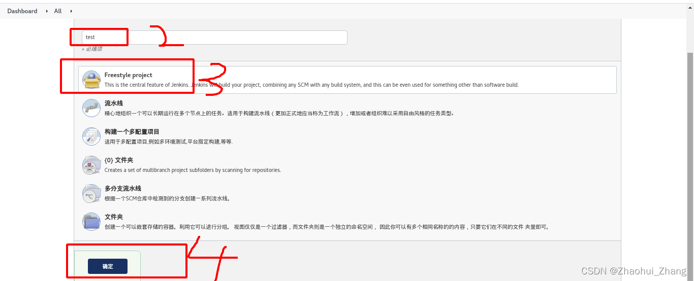 在jenkins中新建项目: