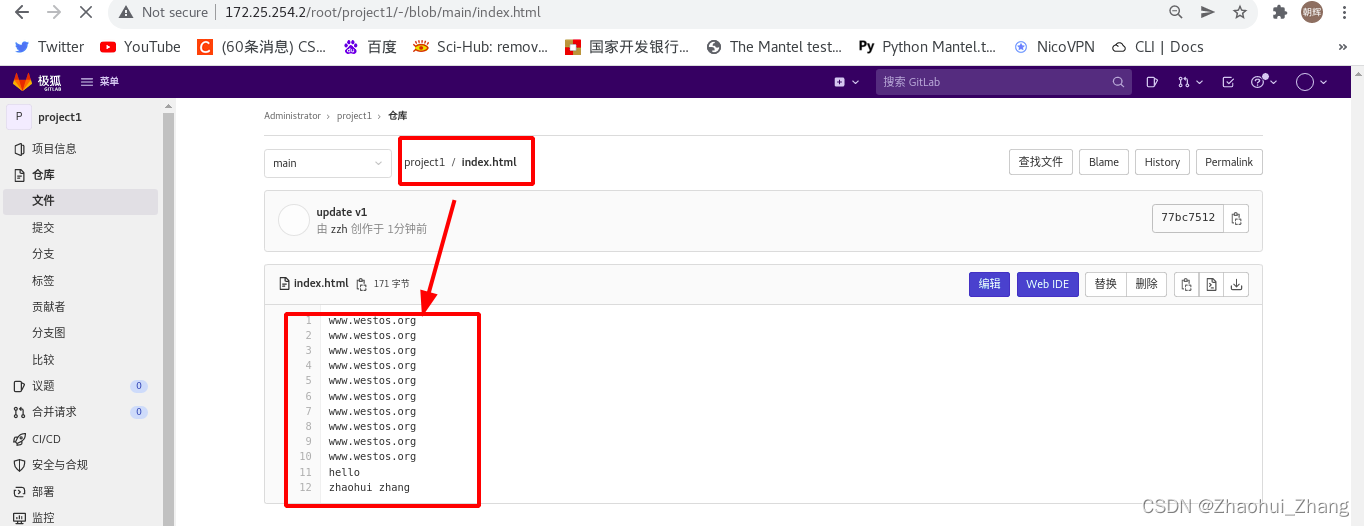 第一步:在gitlab客户端更改i项目文件并推送到gitlab中