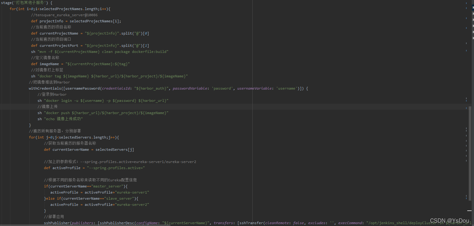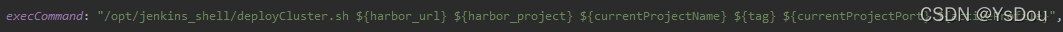 sshPublisher(publishers: [sshPublisherDesc(configName: "${currentServerName}", transfers: [sshTransfer(cleanRemote: false, excludes: '', execCommand: "/opt/jenkins_shell/deployCluster.sh ${harbor_url} ${harbor_name} ${currentProjectName} ${tag} ${currentProjectPort} ${activeProfile}", execTimeout: 120000, flatten: false, makeEmptyDirs: false, noDefaultExcludes: false, patternSeparator: '[, ]+', remoteDirectory: '', remoteDirectorySDF: false, removePrefix: '', sourceFiles: '')], usePromotionTimestamp: false, useWorkspaceInPromotion: false, verbose: false)])