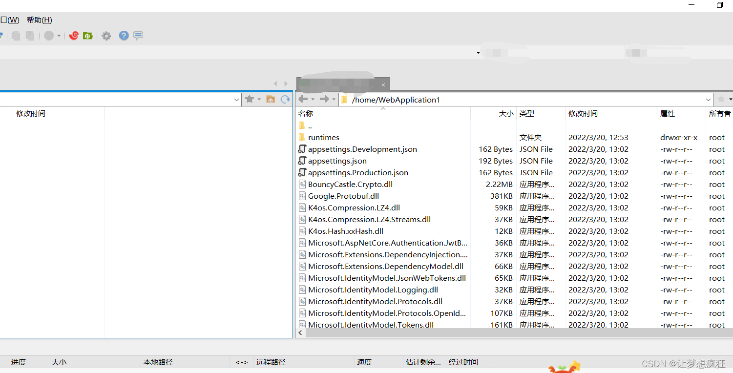 通过Xftp,将发布后的publish内文件复制到centos指定文件。即可完成上传。