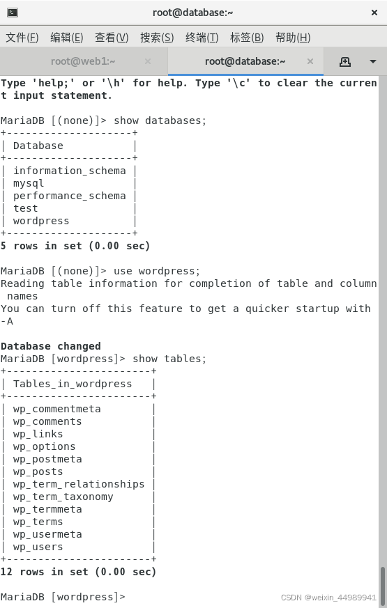 [root@web1 ~]# mysqldump wordpress > wordpress.sql